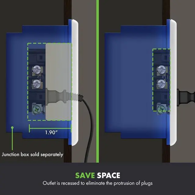RESCESSED DESIGN: Helps prevent cords from being accidentally snagged and unplugged. The durable recessed frame reduces or eliminates the protrusion of plugs. This will help prevent wire damage or prevent the inability to install an equipment at the location