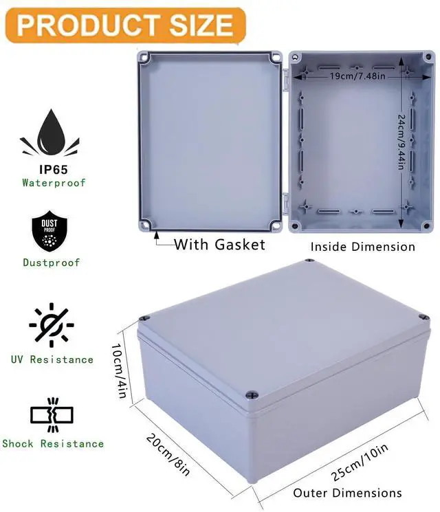 Our Waterproof junction box is made of high-quality ABS plastic, which is very lightweight, heat-resistant, wear-resistant, corrosion-resistant, not prone to fading, durable and sturdy,effectively block splashing water, rain, dust, snow, oil, UV, etc., can be widely used for both indoor and outdoor applications.