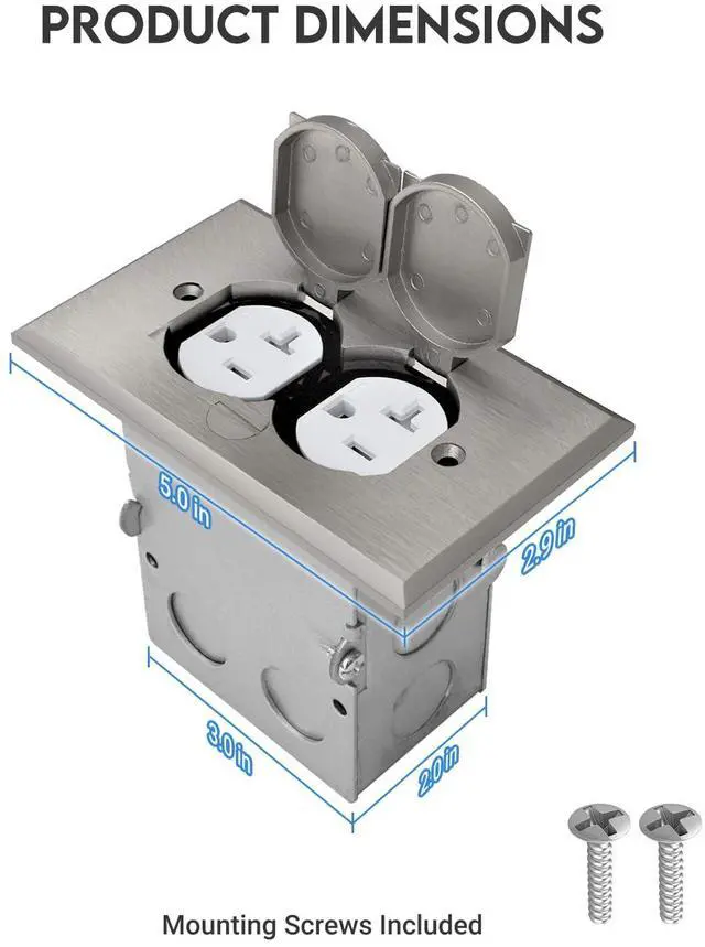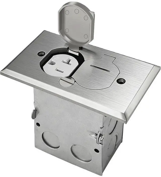 This nickel plated brass floor outlet cover box is designed to be recessed into the floor for a flush and seamless look. Made with a sturdy metal body and flip lid covers, floor socket provides a secure and watertight enclosure. Flip lid provides easy access to 20A tamper resistant receptacle, and waterproof gasket protects against moisture. Upgrade your home or office with this floor outlet cover box.