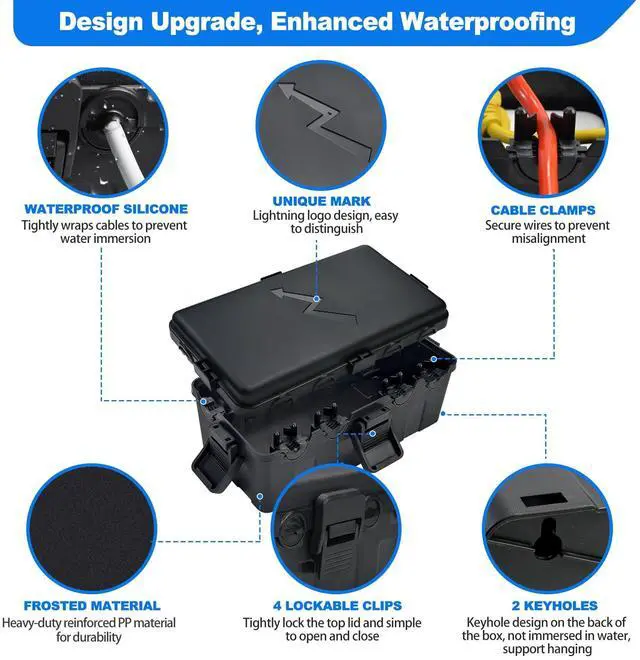 Weatherproof extension cord cover, protects power outlets, extension cable cords, Christmas lights