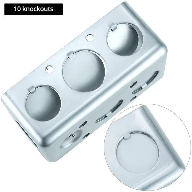 Designed with ten 1/2'' knockouts (six on the side, two on the end, and two on the top/bottom) for flexible installation and easy access to wiring.