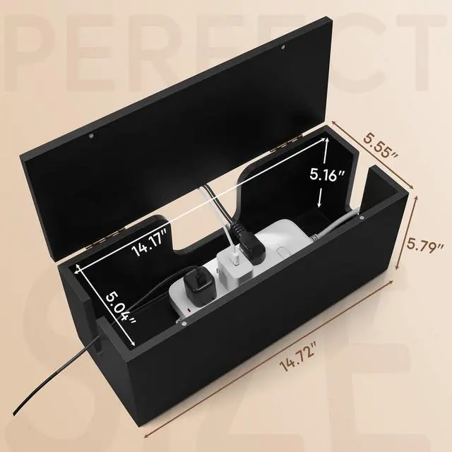 Premium Solid Wood: Crafted from solid pine wood with a smooth finish, this cable management box is built to withstand daily use while adding understated sophistication to any space. Its generous 14.17"L x 5.04"W x 5.16"H internal size accommodates most power strips, surge protectors, and excess cables - keeping your setup tidy without taking up unnecessary room.
