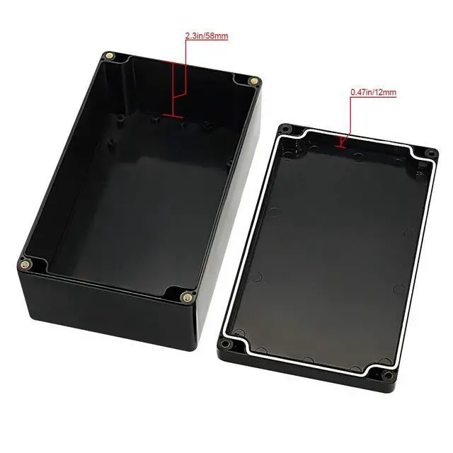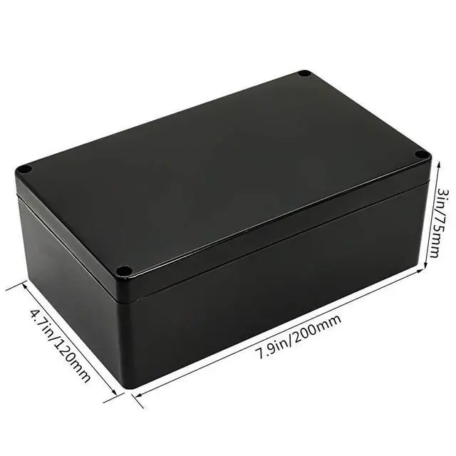 Coming with one IP65 waterproof black project box and 4 screws.