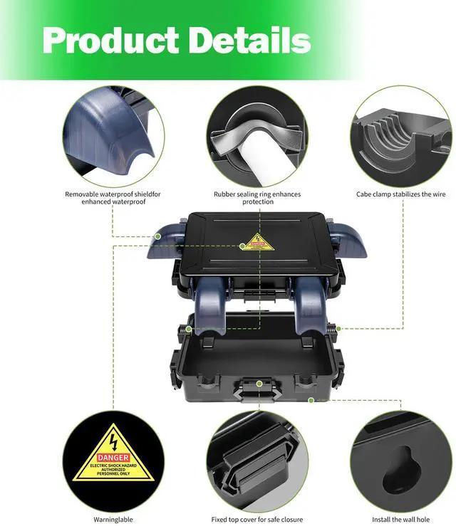 - Sturdy and durable outdoor waterproof box made of heavy-duty plastic can withstand external damage, shocks or drops, and extreme weather such as heavy rain and snow, providing continuous protection of connections from electrical hazards.
