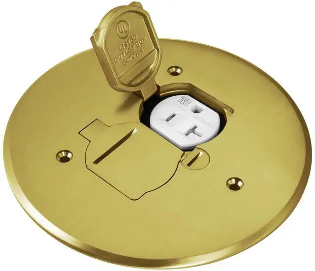Wiring: #12-10 AWG stranded and solid copper wire; Receptacle Rating: 20A, 125VAC; Cover Material:? Brass; Cover Dimensions: ?5.75" Diameter