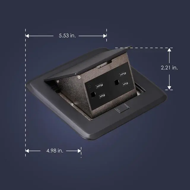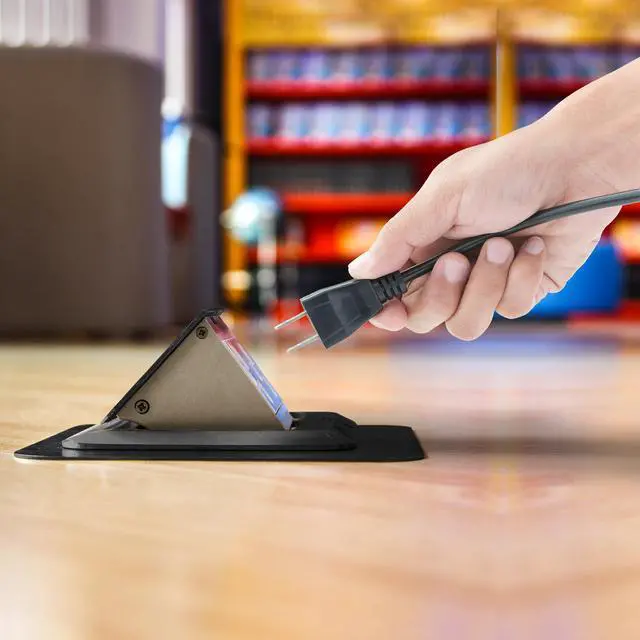 Get tougher, safer, low-key pop-up floor box outlets that complement your choice of flooring. Our electrical box is made from sturdy, galvanized steel that's UL-listed and remains as unobtrusive as possible when not in use. It's nearly flush with the floor when installed, making it safer for foot traffic and easier for carts and hand trucks to roll over without incident. Our pop-up outlet has an adjustable height of 1 in. D and is ideal for wood sub floors. It collapses into a flat, sturdy surface, helping to eliminate stumbling hazards when the receptacle outlets are not in use. The lid also keeps out dirt and debris while the gasket protects the inside of this home improvement electrical equipment from getting wet. Our pop-up floor outlets come with 15 Amp tamper-resistant duplex receptacles to add a layer of safety and increase protection against accidents. The 1-gang duplex receptacle outlet is ideal for carpet and wood surfaces among others. The terminal block is pre-wired for easy access. Just insert the wires and tighten the screws.
