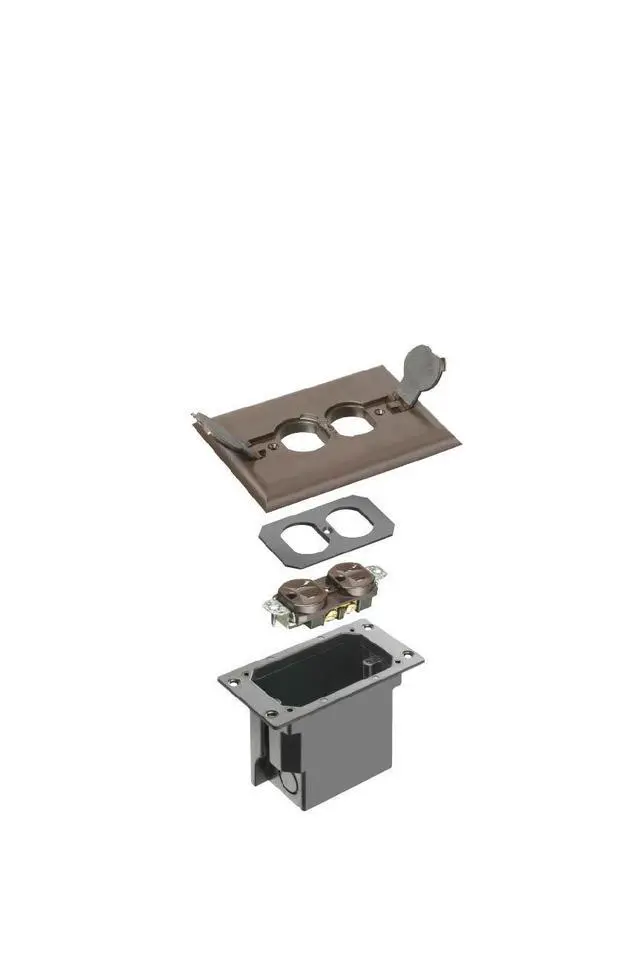 Arlington FLBRF101BR-1 Retrofit Electrical Floor Box with Flip Lids, For Existing Floors, Brown, 1-Pack. 20.0 cubic inch Box for existing floors. Electrical box easily installs flush-to-floor wherever you need it. Includes floor box, (1) NM94 connector, duplex receptacle, back plate, gasketed cover and (5) #6-32 cover plate screws. Oversized rectangular cover hides miscut flooring. Low-cost way to put receptacles into existing floor - units are UL Listed and Made in USA.