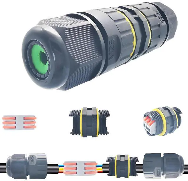 The weatherproof junction box cable plug is safe for home, garden or exterior lighting. Use it to repair and extend power cables. It is safe enough to repair and extend electrical wires. Suitable for quick connection to outdoor lighting and external wiring. IP68-rated weatherproof coupler to connect two 2pin/3pin cord wire cables together, ideal for harsh industrial or outdoor environments.