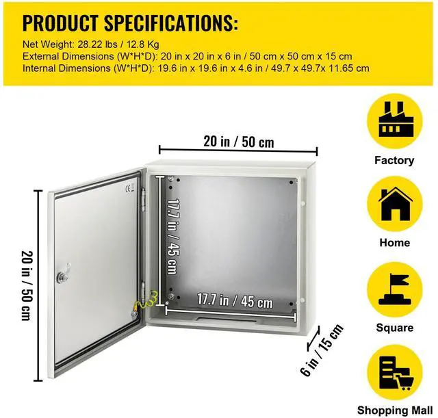 Inner Dimensions (H x W x D): 19.6 '' x 19.6 '' x 4.6 '' / 49.7 x 49.7 x 11.65 cm