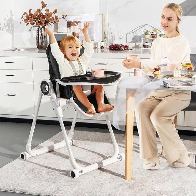 Flexible Adjustments Meet Different Needs: This baby high chair features 6 adjustable seat heights, 3-position backrest, 4-position footrest and 3-position food trays, allowing you to freely adjust the position according to your needs. The baby high chair can be used for feeding, playing, resting and more, accompany your baby to grow up.