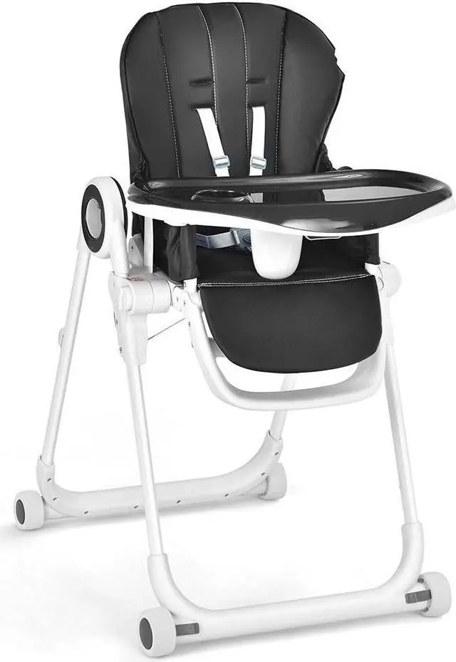 Folding Design and Easy Mobility: The infants feeding chair is easy to fold and unfold in seconds, saving space for storage and transport. Besides, the food trays can be suspended on the rear leg, which avoids wasting time to find or store the food trays. Moreover, the portable feeding chair is built with 4 wheels and all wheel are lockable for firm standing.