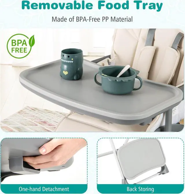 Safety is Our First Priority: 5-point safety harness and anti-falling barrier secure little ones in place, and the food tray is made of BPA-free PP material. The high chair's design complies with ASTM and CPSIA, providing peace of mind to parents about their child's security.
