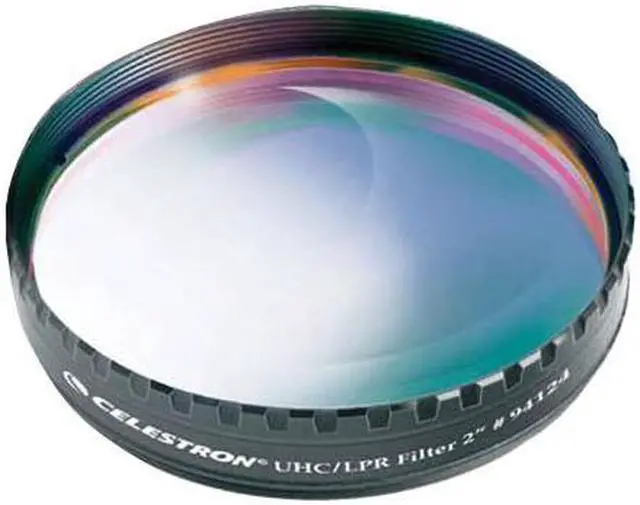 Just imagine capturing the celestial wonders with enhanced contrast and color, free from the interference of artificial and natural light pollution. The 2" UHC / LPR Filter from the reputable brand, Celestron, is meticulously designed to selectively reduce the transmission of certain wavelengths of light, specifically those produced by artificial sources like mercury vapor, and both high and low-pressure sodium vapor lights. It also effectively blocks the unwanted natural light caused by neutral oxygen emission in our atmosphere, commonly known as sky glow. This high-quality UHC (Ultra High Contrast) LPR (Light Pollution Reduction) filter offers improved contrast over typical broadband filters, making the sky background appear darker and the contrast of emission nebulae noticeably improved.