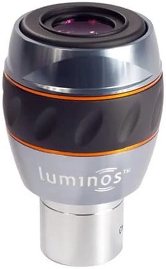 This means you can interchange eyepieces during your observing sessions with minimal to no additional focusing required, making your viewing experience seamless and enjoyable. Constructed from polished and anodized aluminum, the durable Luminos eyepiece body is designed to last. It features a rubber grip around its equator, providing a secure hold and an effortless method for adjusting the retractable eyecup. Simply twist the rubber grip to modify the height of the eyecup to your comfort. Moreover, the insert barrel of this versatile eyepiece is threaded to accept filters, adding to its functionality.