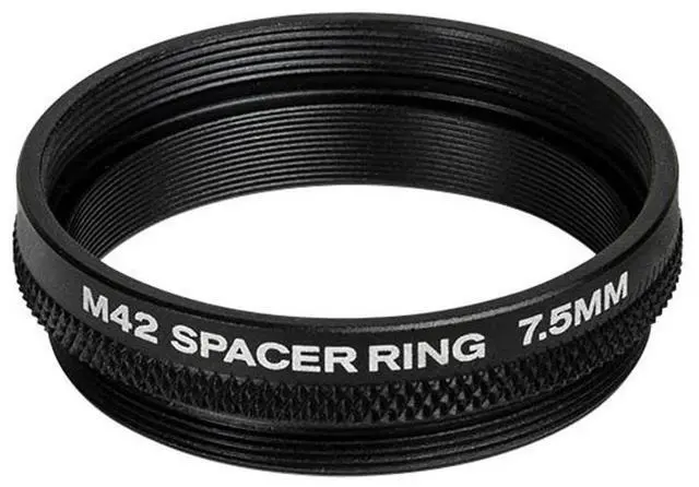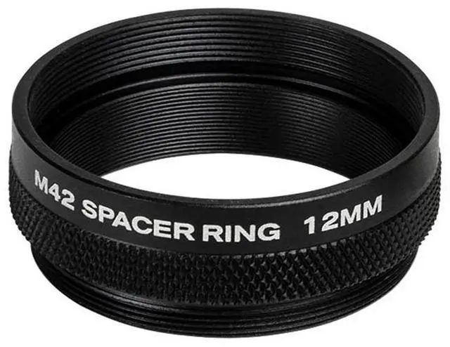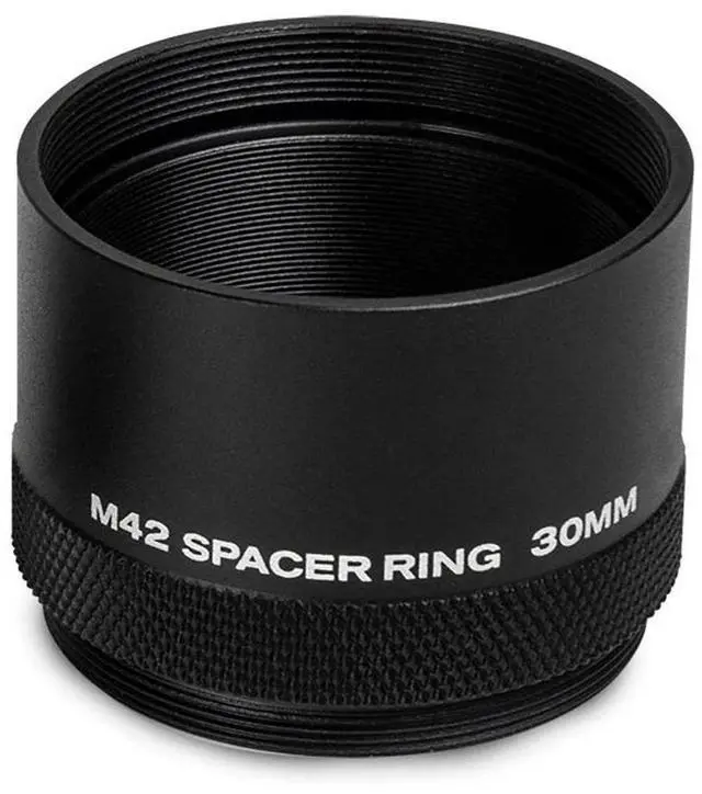 Each M42 Spacer Ring is crafted from machined aluminum and is black anodized. The internal surfaces are blackened and glare-threaded to provide the highest contrast. The spacer rings feature a knurled surface, ensuring a secure grip for easy threading and unthreading. These rings are compatible with M42 x 0.75 (T-thread) camera adapters. To assist you in choosing the correct spacer ring, here's a quick guide for our EdgeHD, Schmidt-Cassegrain, and