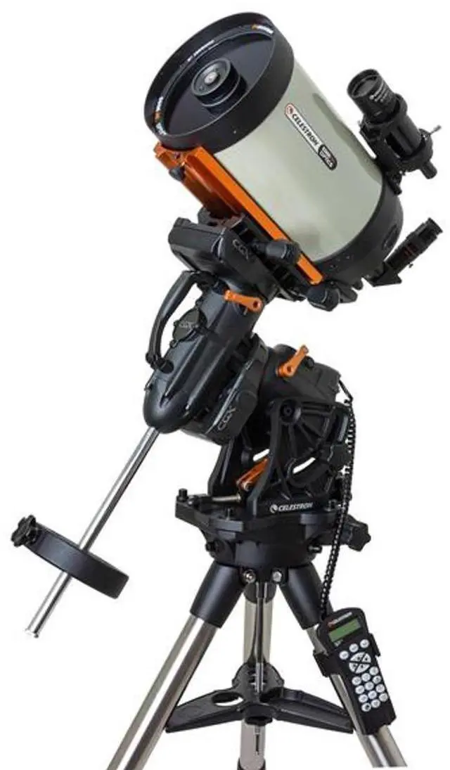 The mount also includes home and limit optical sensors, internal hard stops for both axes, and brand new control software developed in conjunction with PlaneWave Instruments for professional level control operation and imaging. The improved tripod includes 2" steel legs with height index marks for quick leveling, a "Jack of all trays" for holding eyepieces and other accessories, and an adjustable EQ head position to optimize the center of gravity over the tripod. The CGX 800 HD also features improved ergonomics with two handles for easy transport, ergonomically designed dovetail clamping knobs, and an innovative polar alignment adjustment system.