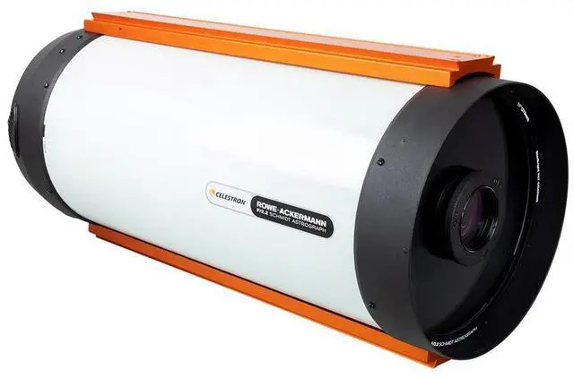 The USFS is also compatible with the optional Celestron Focus Motor (#94155-A). The integrated 12V DC MagLev fan reduces cooldown time and provides optimal airflow through the dust filtered optical tube. Engineered as a complete astroimaging system, every component of the RASA 11 V2 is optimized for peak performance with DSLR and astronomical CCD cameras. Down to the thickness of the glass used in the included fully-multicoated optical window or optional imaging filter, every component of the system has been taken into careful consideration to work together seamlessly. The Dovetail CGE bars on the top of the optical tube provides a connection for use of optional accessories like a guidescope.
