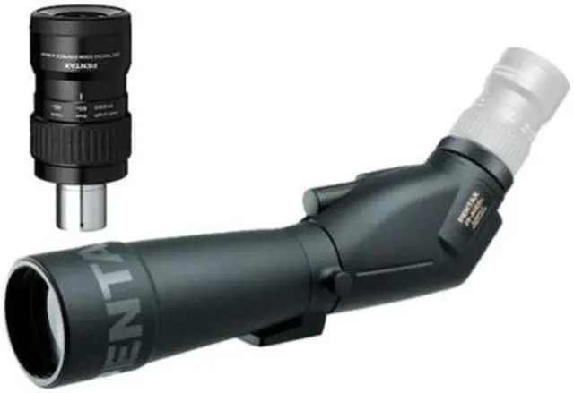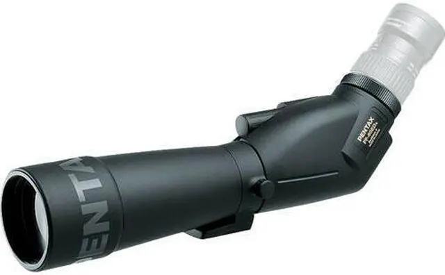 Angled ViewingBecause of its superb image quality, interchangeable eyepieces, and viewer-friendly angled eyepiece design, the Pentax PF-80EDA Spotting Scope can be used for a wide range of subjects and performs flawlessly even under highly demanding conditions in the field.KEY_TAB The PF-80EDA offers a host of other outstanding features, including a built-in lens hood to cut excessive light and keep the objective lens free of dust and rain, effortless focusing via an accessible focusing knob, a built-in tripod socket with a click-stop rotation mechanism, a long 20mm eye relief for easy viewing, and a rubber housing to protect the internal components and mechanisms from shock and damage.
