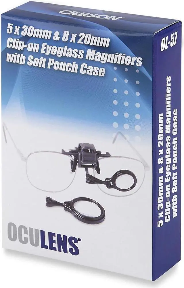 Carson OcuLens 5x / 7x Clip-on Adjustable Eyeglass Magnifier Set OL-57