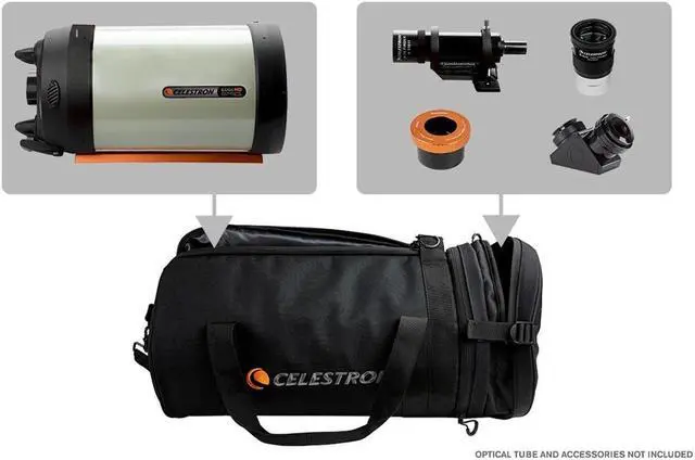 Carry the bag using the sewn-in handles or opt for the clip-in padded shoulder strap for hands-free carrying. This versatile telescope bag is compatible with most 8" optical tubes under 18" in length. It's the perfect fit for Celestron telescopes, including the EdgeHD 8" Optical Tubes and Schmidt Cassegrain 8" Optical Tubes. Invest in our Padded Telescope Bag for 8" Optical Tubes and experience the perfect blend of protection, convenience, and style for your astronomy equipment.