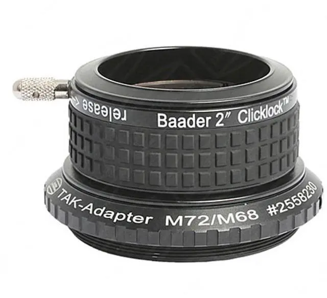 The Baader ClickLock Eyepiece Clamp is a precision clamping eyepiece holder thatenables you to insert your eyepieces or standard 1.25" accessories anywhere within the Baader Astro T-2 System, or for upgrading the stock holder supplied with your telescope. The Click-Lock clamp offers a better approach to eyepiece holders. Once you try one, you'll never go back to simple set screw or even captive brass clamp rings again! With a gentle twist of the outer ring, two special non-marring cam rollers come into contact with the eyepiece and firmly lock it into the holder.