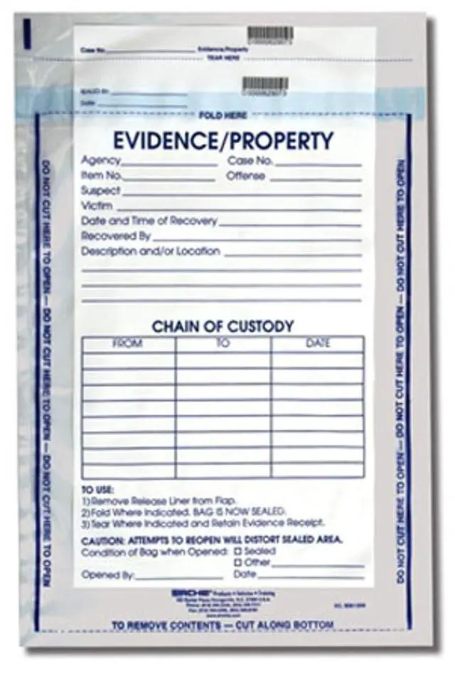 The Sirchie 12" x 15-1/2" Integrity Evidence Bag is a waterproof, tear- and puncture-resistant, printable and includes a tamperproof seal. No other evidence bag offers greater integrity, security and convenience. It is made of heavy-duty, 3.2 -mil-thick, multilayer, coextruded polyolefin film.
