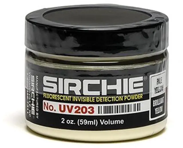 In summary, the Sirchie UV203 Fluorescent Invisible Detection Powder in Pale Yellow/Brilliant Yellow is a versatile, easy-to-use, and highly effective tool for all your detection needs. Whether you're a professional investigator or simply need a reliable detection solution, this product offers a blend of discretion, adhesion, and high visibility under UV light that is hard to beat.