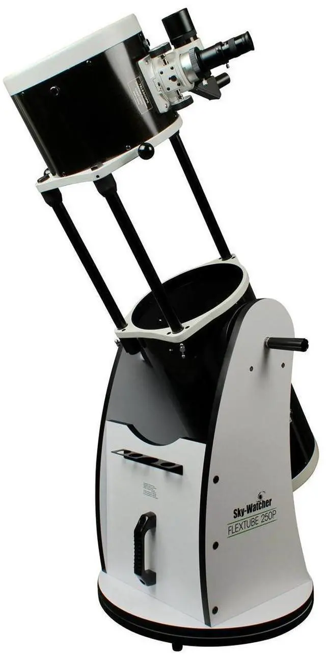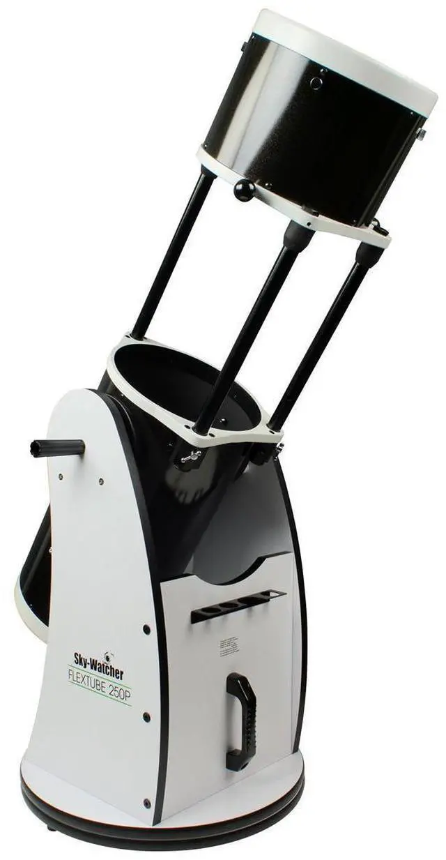 Find the universe at your fingertips with the Sky-Watcher Flextube 250P Collapsible 10" Dobsonian Telescope, a stylish and durable instrument that promises to elevate your stargazing experiences. This high-quality telescope is designed for the avid amateur astronomer who demands both performance and convenience. The innovative truss-support concept allows for a seamless collapse of the optical tube's front and back cells, ensuring that the telescope is user-friendly and can be effortlessly transported and stored by a single individual. The Sky-Watcher Flextube 250P boasts a substantial 10-inch aperture, providing superior light-gathering capabilities that result in brighter, clearer, and more detailed images of celestial wonders.