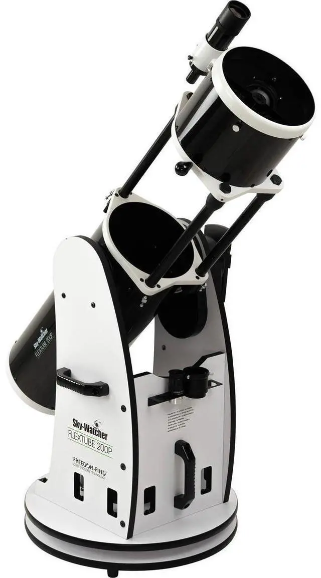 The elegant truss tube design was carefully engineered to combine ease of use, extreme portability, and consistent performance in an affordable package. Unlike other truss tube designs, the Flextube Dobsonian does not need to be disassembled between uses. It transports as two compact pieces (optical tube and rocker box) that can be assembled and ready to use in just seconds! It is easy to collimate once set up, and it holds its collimation throughout the evening and even after being collapsed! The patented Freedom Find dual encoder design allows the telescope to be moved manually whenever the user wishes - but with no need for re-alignment! The Flextube SynScan series seamlessly combines the convenience and affordability of the traditional Dobsonian with the performance and precision of a computerized GoTo telescope all to help you in your quest for big aperture views.