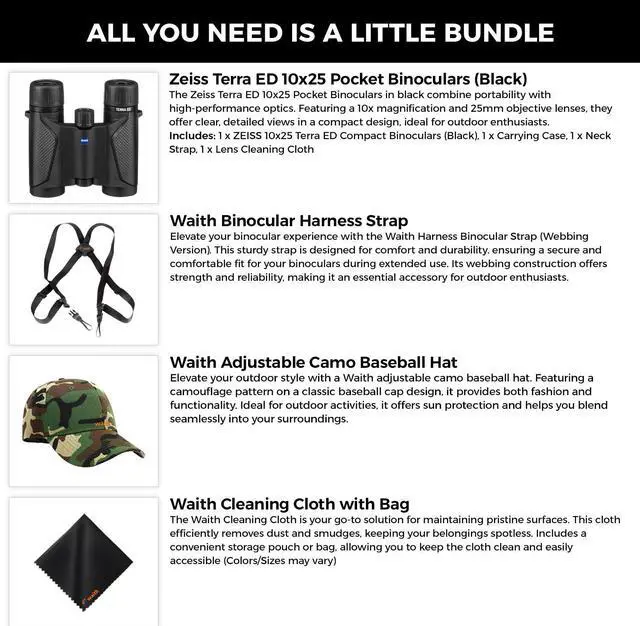 Experience precision with the Zeiss Terra ED 10x25 Compact Binoculars. Boasting 10x magnification and a robust build, it ensures clear views for outdoor enthusiasts.