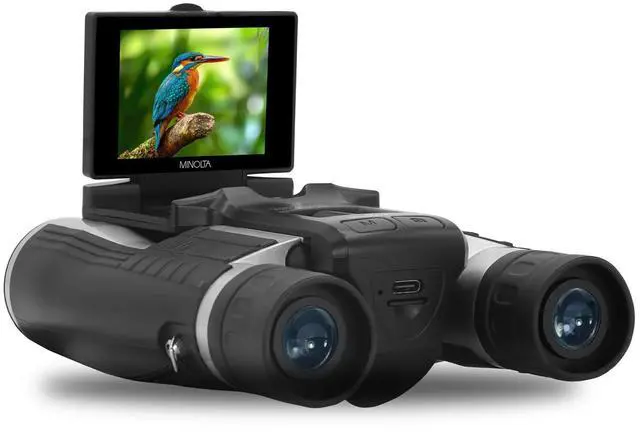 The Minolta MN1232A 12x32 Digital Binoculars deliver the combined power of precision optics and 4K Ultra HD digital recording in one portable device. Designed for travelers, nature observers, and outdoor explorers, these binoculars feature 12x magnification with 32mm objective lenses for crisp, vibrant viewing. The built-in 4K UHD camera captures photos up to 48 megapixels and includes an additional 8x digital zoom to bring distant subjects even closer. A bright 2.4" IPS anti-glare display allows easy framing and playback, even under direct sunlight. HD multi-coated lenses and a roof-prism optical design provide clarity and contrast across a 5.0 ° field of view, while a fog-resistant coating ensures consistent performance in shifting conditions.