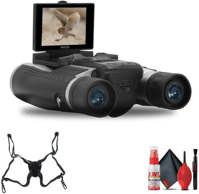 MINOLTA MN1232A 12x32 Digital Binoculars w/4K UHD Camera Cleaning Kit ProStaff Suspender Harness Binocular Strap