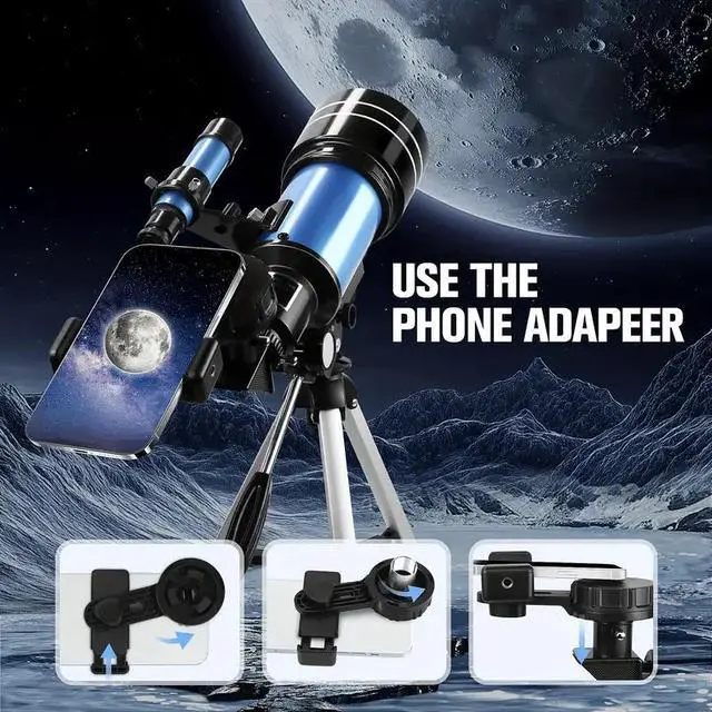 Wireless Remote & Phone Adapter: Our telescope is equipped with a wireless remote and phone adapter. Just install your mobile phone on the phone adapter, connect to the the eyepieces of the telescope, and use the wireless remote to take the photos. You can take clear and bright pictures easily.