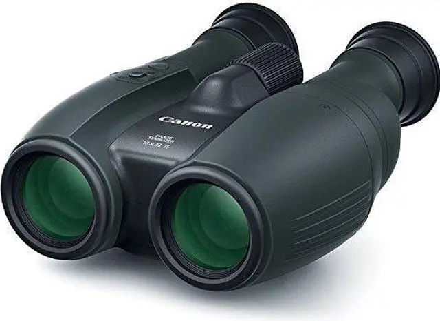 Adapting the IS system from their line of EF lenses, the Canon 10x32 IS Image Stabilized Binocular employs a lens-shift system uses a combination of a vibration gyro-mechanism and microprocessors that detect and counter the appearance of hand-shake by moving the internal lens assembly to make the image appear steady. Two IS modes allow the performance to be tailored to the situation: Normal IS is ideal for moving or multiple subjects, while Powered IS improves the stabilization when observing a single stationary subject. An intuitive two-button user interface makes choosing the mode simple and easy. The IS runs on two included AA batteries, and when not using the image stabilization, the optic will operate as a conventional pair of binoculars. Optically, the binoculars are built with traditional Porro prisms, and an integrated field-flattener lens that corrects spherical aberration for distortion-free views, especially at the edges. Canon's proprietary Super Spectra Coating is used to limit color bias, lens flare and ghosting; while maximizing light transmission, color rendition, clarity, and contrast across the entire visible spectrum. With this new IS system, the close focus distance has been drastically reduced versus earlier models that use a different IS mechanism. Performance 10x magnification 32mm objective lens Porro prism light path Fully multi-coated optics using Canon's proprietary Super Spectra Coating to limit color bias, lens flare and ghosting; while improving light transmission, color rendition, clarity, and contrast across the entire visible spectrum Doublet field-flattener lens corrects spherical aberration for distortion-free views, especially at the edges 7-element/6-group objective lens configuration 5-element/4-group eyepiece lens configuration 315-foot field of view at 1000 yards
