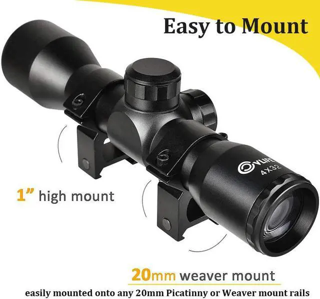 PackageIncluded: 1 x 4*32mm Rifle Scope 1 x Lens Cover 2 x Scope Mount for 20mm Weaver Dovetail Rail Only 1 x Allen key