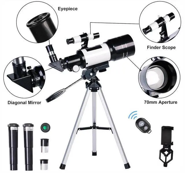 Comes with a wireless remote and universal smartphone adapter which allow you to explore the sky easily through the screen and take amazing photos for sharing.