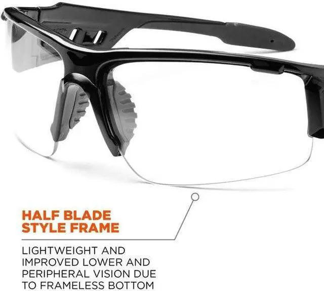 Safety Glasses, Series Dagr, Gender Unisex, Lens Color Clear, Polarized Lens No, Lens Coating Polarized, No Foam Lined, Eyewear Frame Design Traditional, Eyewear Frame Style Half-Frame, Frame Color Black, Eyewear Size Universal, Frame Material Nylon, Lens Material Polycarbonate, Temple Color Black, Temple Style Co-Injected Rubber, Photochromatic Lens No, Metal Detectable No, X-Ray Detectable No, UV Protection 99.9 Percent, Standards ANSI Z 87.1 +, CSA Z 94.3, EN 166, MIL-PRF 32432. This item has been restricted from sale in the following state (s): []