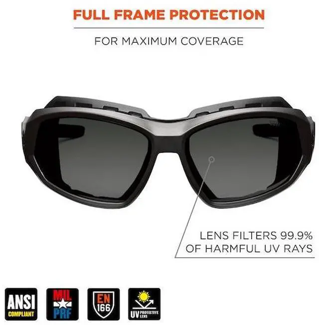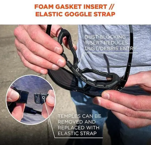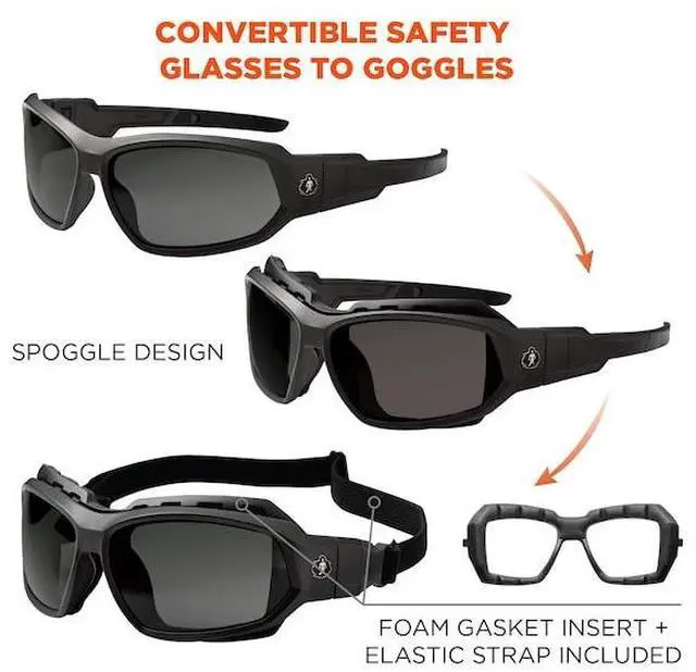 California Proposition 65: This product contains a chemical known to the State of California to cause birth defects or other reproductive harm. Skullerz LOKI Anti-Scratch & Enhanced Anti-Fog Safety Spoggles are designed to be worn as regular safety glasses or as safety goggles by removing the temples and attaching the included strap and adding the removable foam gasket for a dust-beating seal. These safety glasses feature tough anti-scratch and anti-fog polycarbonate lenses to protect against impacts and filter 99.9 percent of harmful UVA, UVB and UVC rays. Available in a variety of lenses to suit a range of tasks and light environments. The durable frames bend and flex without breaking. Non-slip rubber temples keep the glasses secure and resist sweat. TESTED & APPROVEDThese impact-resistant safety glasses are tested to ANSI Z 87.1 + High-Velocity Impact Protection and optical requirements. ANSI Z 87.1 is the US standard for Personal Eye and Face Protection Devices and is listed on the frame. These glasses are also tested to MIL-PRF-32432 Ballistic Fragmentation, Class 1.