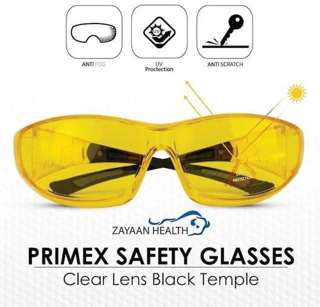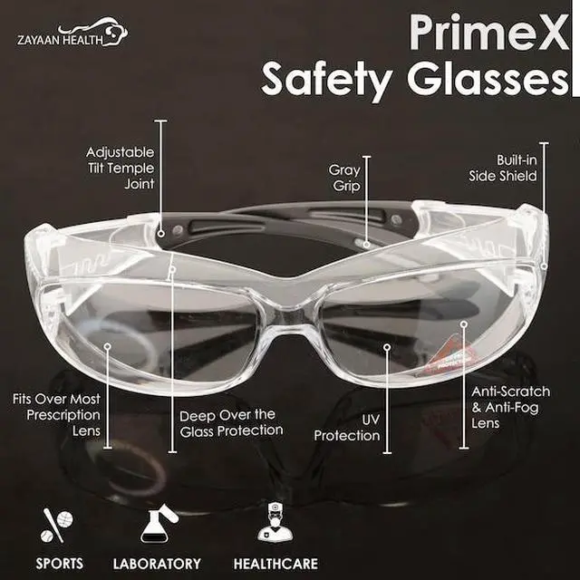 - Enhanced Visibility & Protection: PrimeX safety glasses offer 360-degree visibility and protection, designed to be worn over prescription glasses (OTG) or on their own. The wraparound lenses, crafted from a single piece of polycarbonate, deliver a seamless, unobstructed view. Integrated curved brow and temple design provides built-in side shield protection, exceeding ANSI Z87.1 standards.