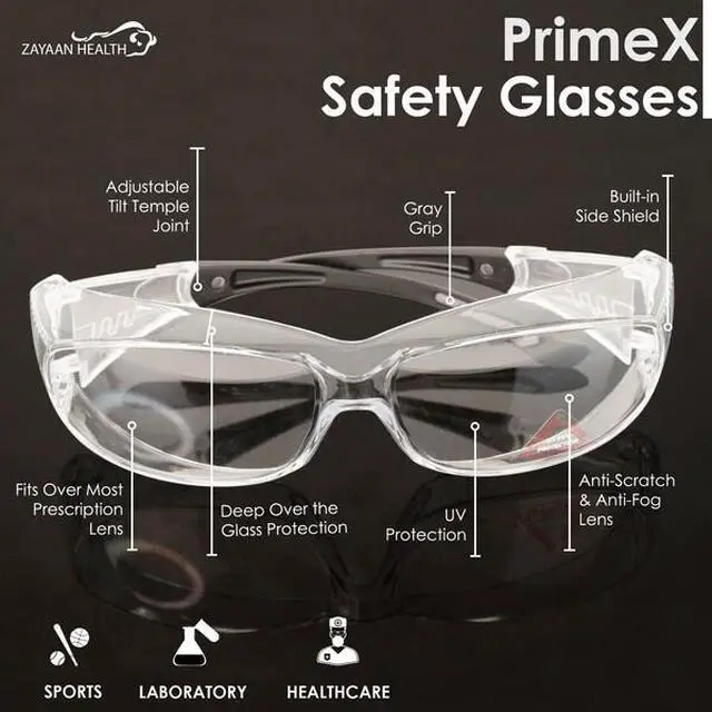 • Enhanced Visibility & Protection: PrimeX safety glasses offer 360-degree visibility and protection, designed to be worn over prescription glasses (OTG) or on their own. The wraparound lenses, crafted from a single piece of polycarbonate, deliver a seamless, unobstructed view. Integrated curved brow and temple design provides built-in side shield protection, exceeding ANSI Z87.1 standards.