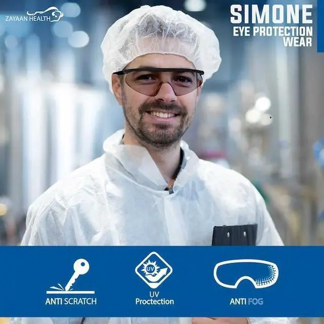 - Comprehensive Visibility & Protection: The Simone safety glasses feature a sleek, wraparound design that offers complete visibility and protection. Suitable for use alone or over small to mid-sized prescription glasses, they are equipped with a one-piece polycarbonate lens for a seamless, unobstructed view. The clear, anti-fog, and anti-scratch lens includes built-in side shields, while the adjustable temples ensure a secure fit. Meets and exceeds ANSI Z87.1 safety standards.