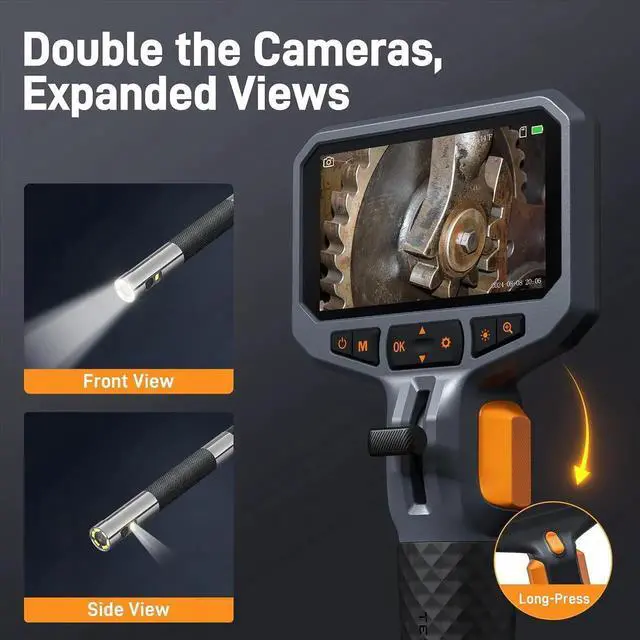 Are you in search of a versatile and reliable inspection tool that can navigate through hard-to-reach places with ease? Look no further than our Articulating Borescope, designed to provide you with a clear view of the inaccessible world. With both forward and side-viewing cameras, along with a crisp 4.5-inch IPS screen, this cutting-edge device is your key to unlocking hidden insights and ensuring precision in your inspections.