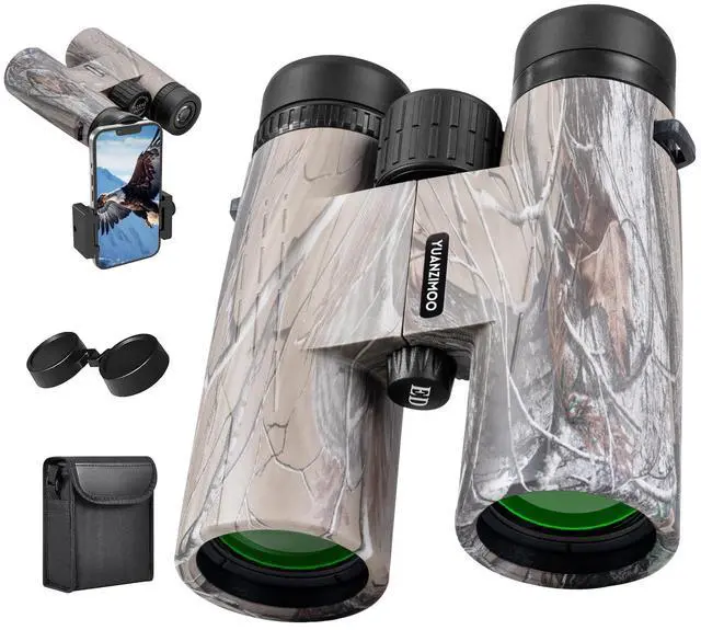 12x42 HD Binoculars for Adults High Powered Binoculars with Upgraded Phone Adapter Waterproof Compact Binocular with Low Light Night Vision for Bird Watching Hunting Outdoor Sports Concerts Camo