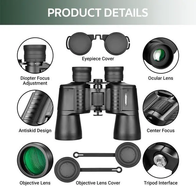 AOMEKIE 10x50 Professional High Powered BAK4 Prism Binoculars for Adults FMC Lens Full-Size Waterproof HD for Bird Watching Concert Outdoor Hiking Traveling