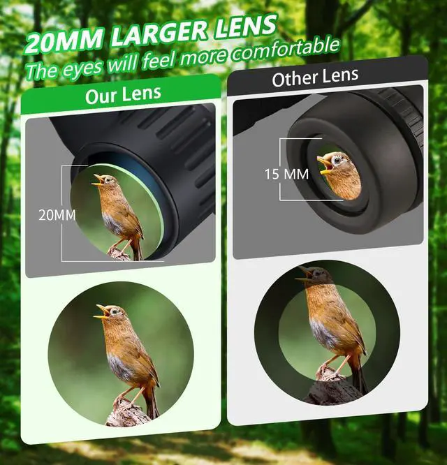Whether you're birdwatching from your backyard or soaking up the views on a scenic hike, this binocular has the solution for your needs, with 20x25 Large eyepieces lens and objectives lens that brings distant wonders closer than ever.