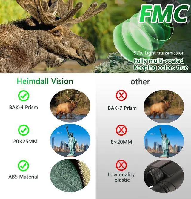 Equipped with a BAK4 prism and FMC coating, these binoculars present images that are bright, sharp, and high in contrast.
