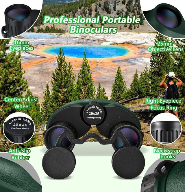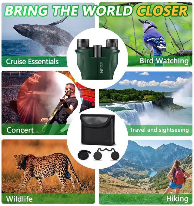 Dive into adventures and cherish every moment with the pocket-sized, lightweight, and portable binoculars designed for all your birding, sports, camping, and outdoor needs. Travel light, see the world!