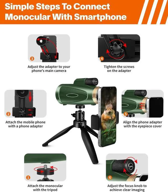 Monocular Telescope 80x100 High Power with Smartphone Adapter Tripod, Wide Field Monoculars for Adults with BAK4 Prism & FMC Lens, for Bird Watching Hiking Camping Wildlife-Green