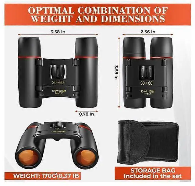 Experience crystal-clear viewing with these versatile 30x60 compact binoculars, perfect for bird watching, travel, and outdoor adventures.