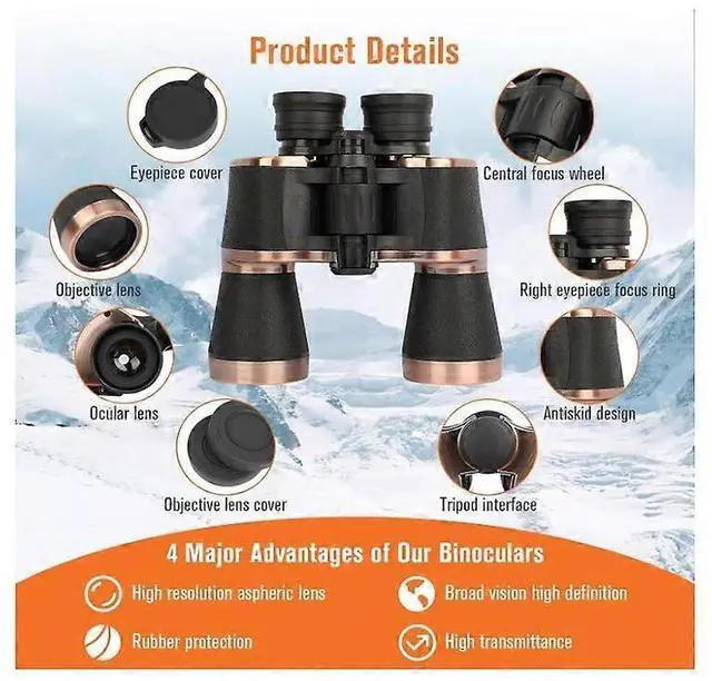 - **20x Magnification & 50mm Lenses**: Wide-angle viewing up to 1000 yards, ideal for bird watching, stargazing, concerts, and sports.